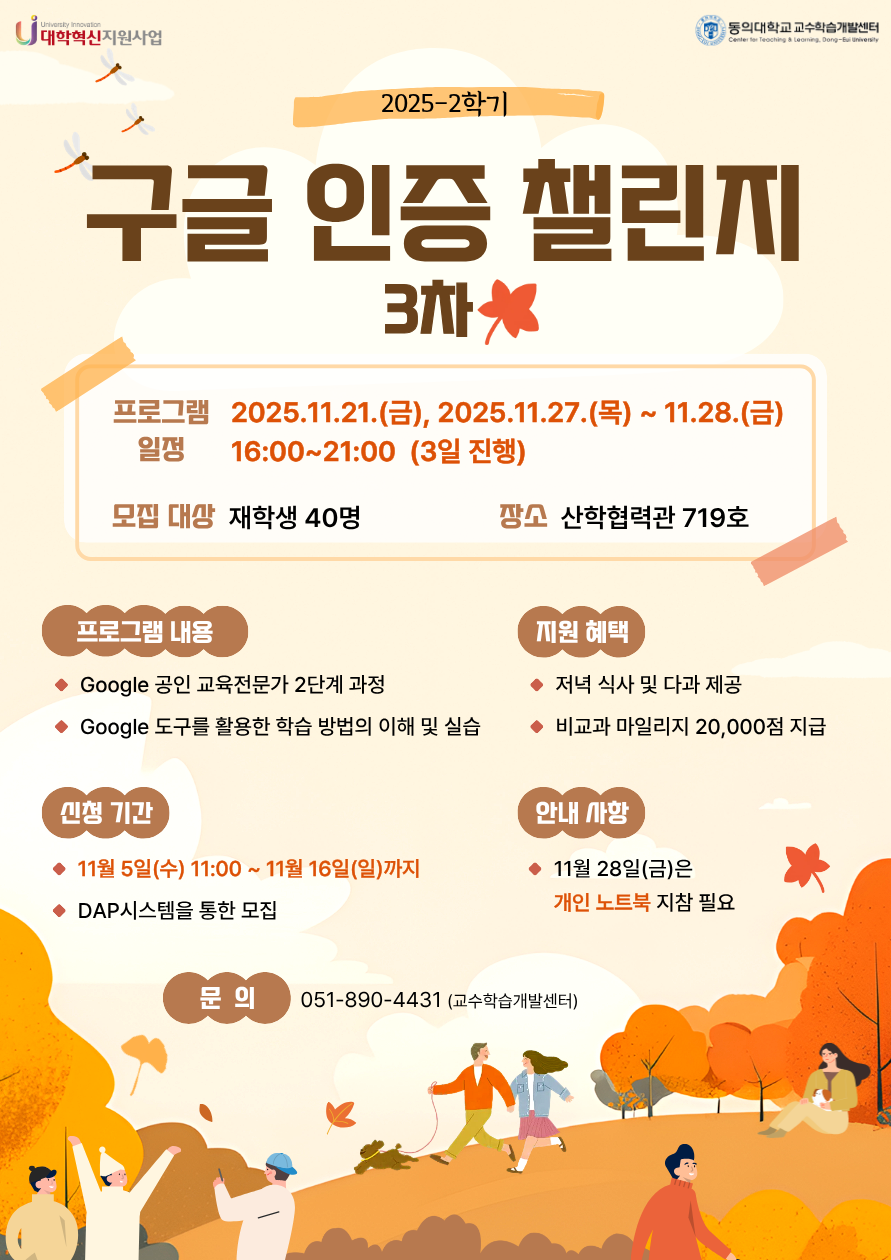 [대학혁신지원사업] 2025-2학기 구글 인증 챌린지(3차) 신청 안내