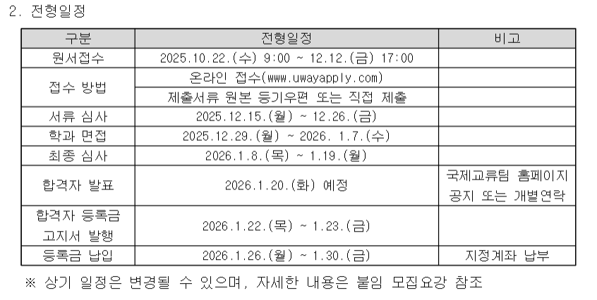 [ 2026학년도 전기 외국인특별전형 2차 모집요강 확정 및 안내 ]